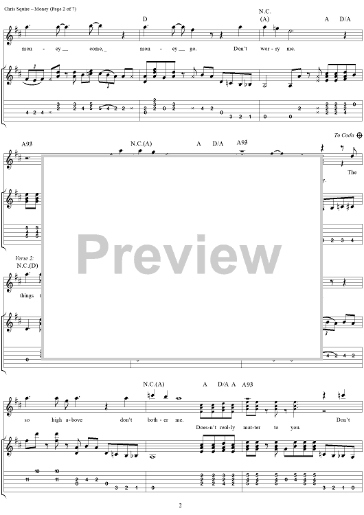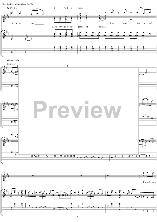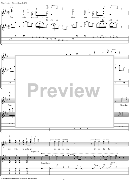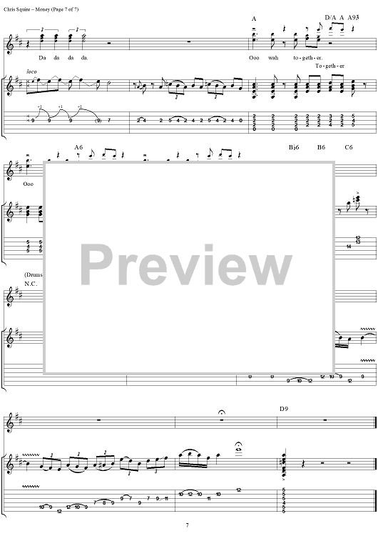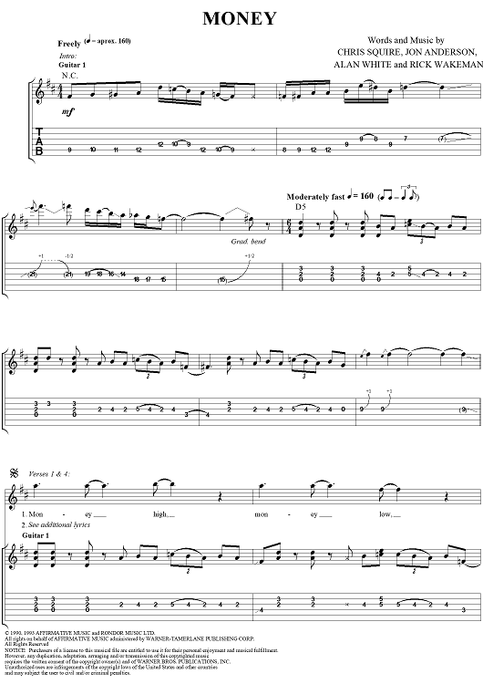 Digital Sheet Music for Money by Yes, Jon Anderson, Chris Squire, Alan White, Rick Wakeman scored for Guitar Tab/Vocal; id:120148