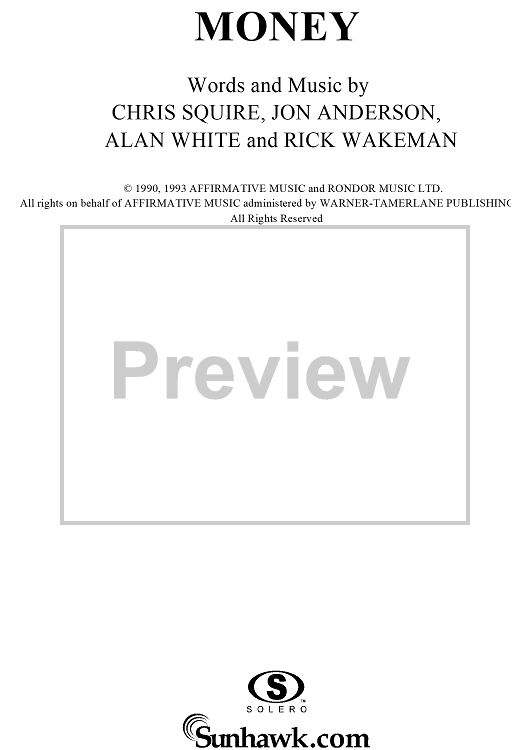 "Money" Sheet Music by Yes