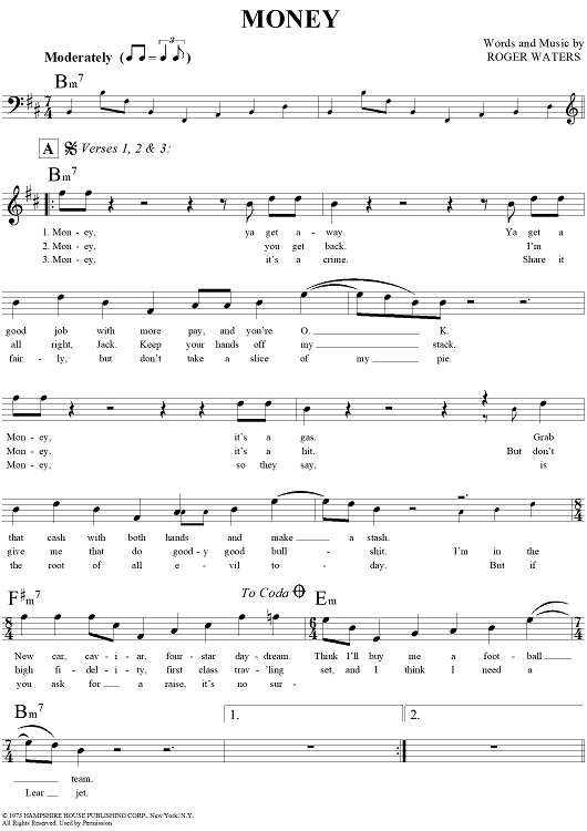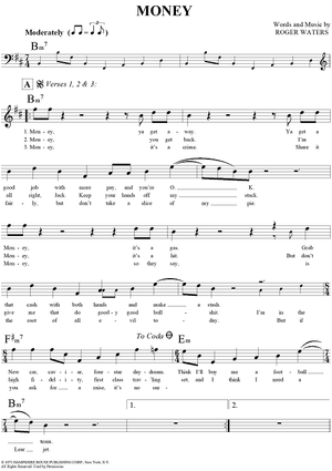 Digital Sheet Music for Money by , Roger Waters scored for Lead Sheet; id:294008