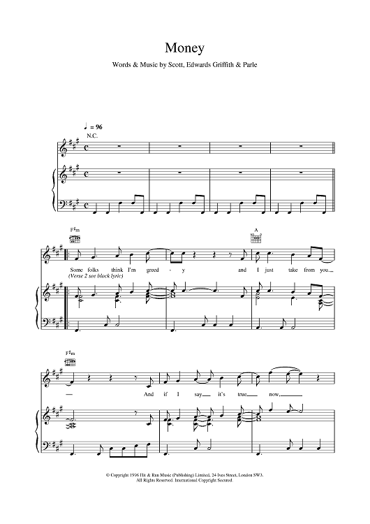 Digital Sheet Music for Money by Space scored for Piano/Vocal/Chords; id:376293