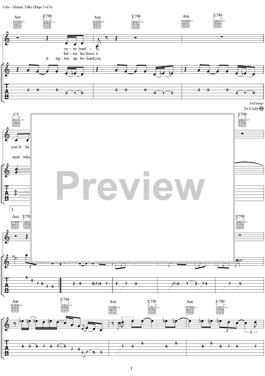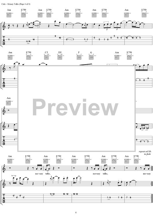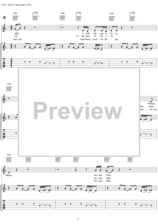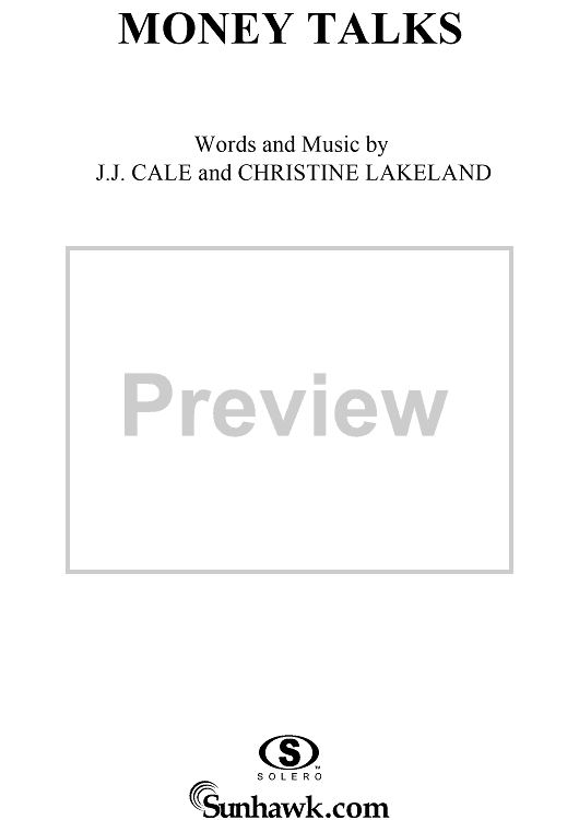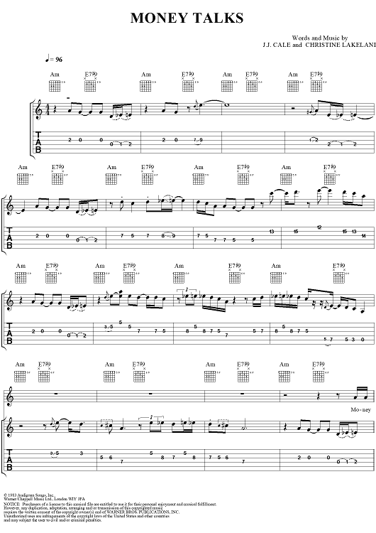 Digital Sheet Music for Money Talks by Christine Lakeland, J. J. Cale scored for Guitar Tab/Vocal; id:273889
