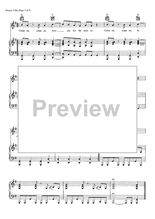 Digital Sheet Music for Money Talks by AC/DC, Angus Young, Malcolm Young scored for Piano/Vocal/Chords; id:465996