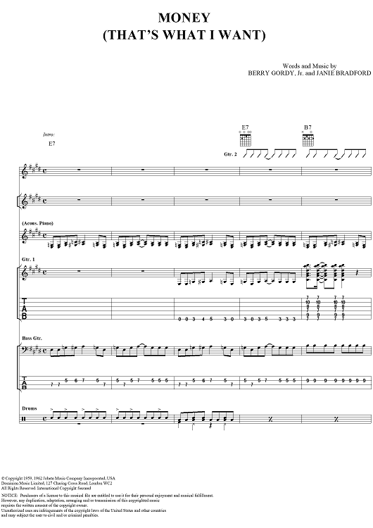 "Money (That's What I Want)" Sheet Music by The Beatles