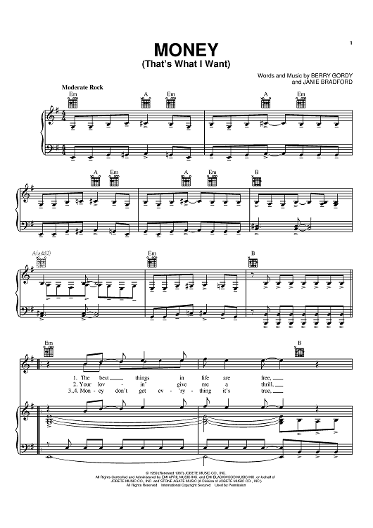 Digital Sheet Music for Money (That's What I Want) by The Beatles, Berry Gordy Jr., Barrett Strong, Janie Bradford scored for Piano/Vocal/Chords; id:370525