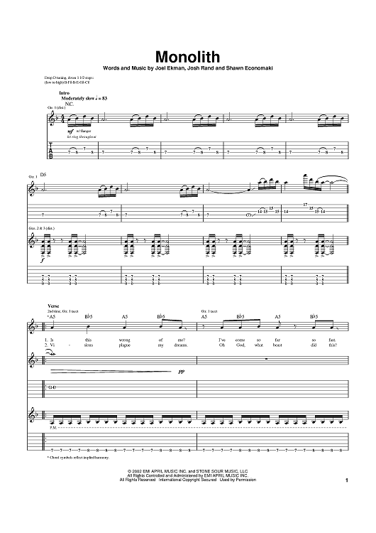 Digital Sheet Music for Monolith by Shawn Economaki, Joel Ekman, Josh Rand, Stone Sour scored for Guitar Tab; id:370755