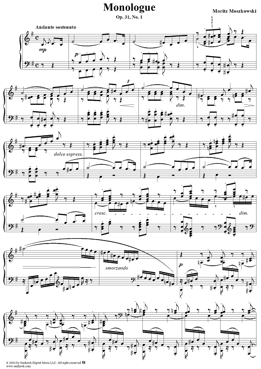 Digital Sheet Music for Monologue, Op. 31, No. 1 by Moritz Moszkowski scored for Piano Solo; id:296741