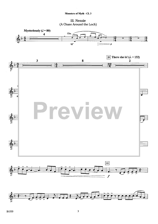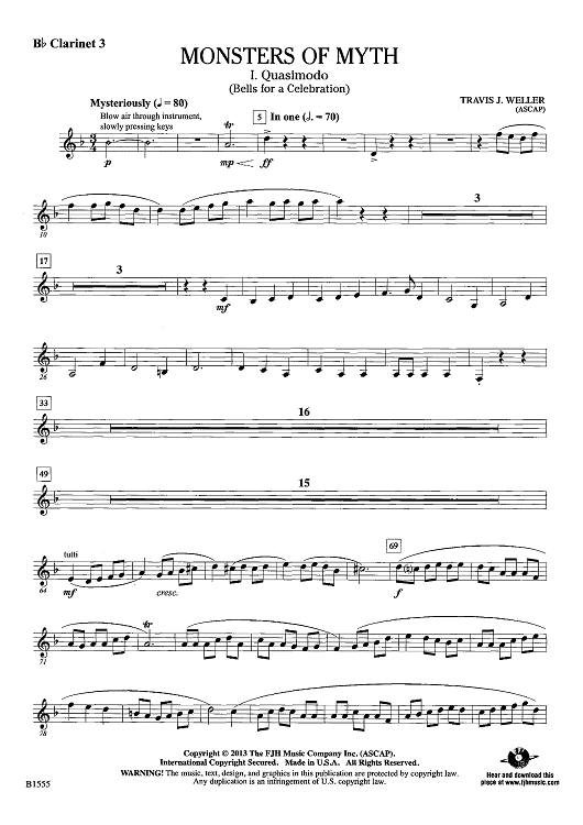 "Monsters of Myth - Bb Clarinet 3" Sheet Music by Travis J. Weller