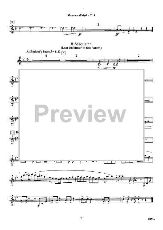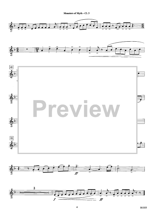 Digital Sheet Music for Monsters of Myth - Bb Clarinet 3 by Travis J. Weller scored for Concert Band; id:440250