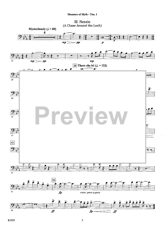 Digital Sheet Music for Monsters of Myth - Trombone 1 by Travis J. Weller scored for Concert Band; id:440261