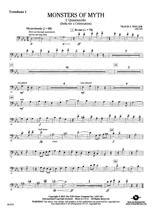 "Monsters of Myth - Trombone 1" Sheet Music by Travis J. Weller