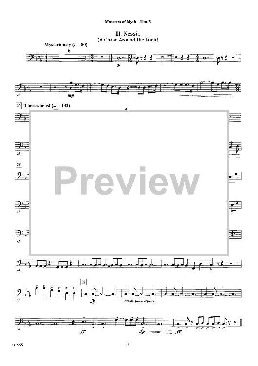 Digital Sheet Music for Monsters of Myth - Trombone 3 by Travis J. Weller scored for Concert Band; id:440263