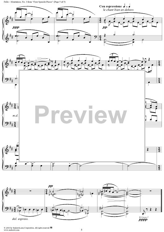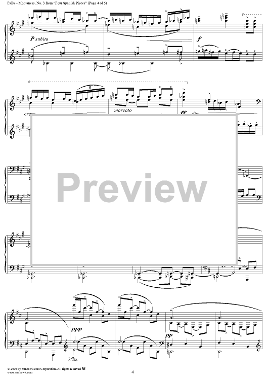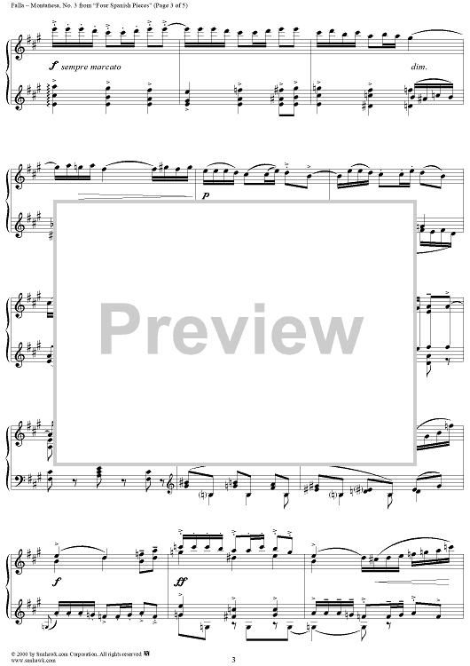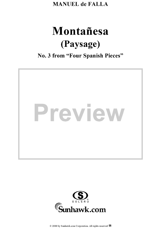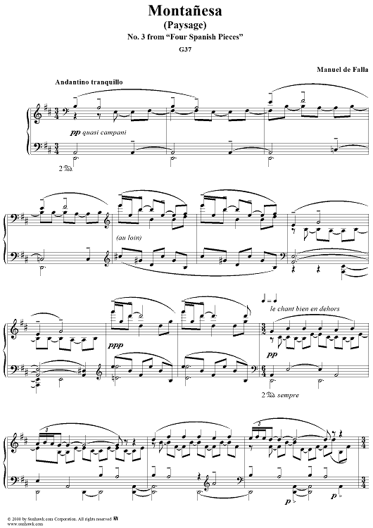 Digital Sheet Music for Montañesa No. 3 from "Four Spanish Pieces", G37 by Manuel De Falla scored for Piano Solo; id:256210