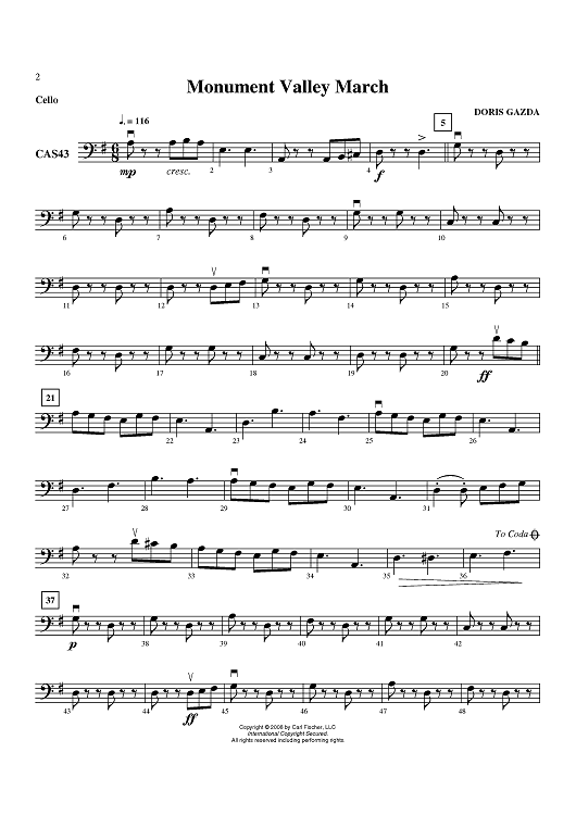 "Monument Valley March - Cello" Sheet Music by Doris Gazda