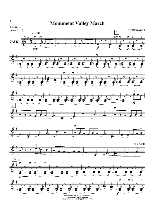"Monument Valley March - Violin 3/Viola" Sheet Music by Doris Gazda