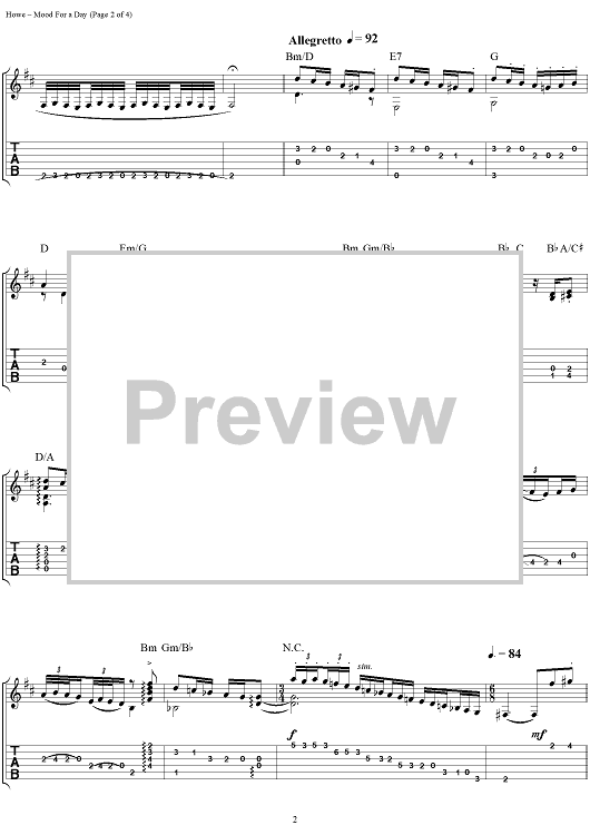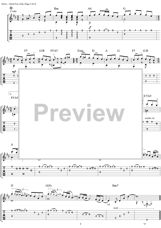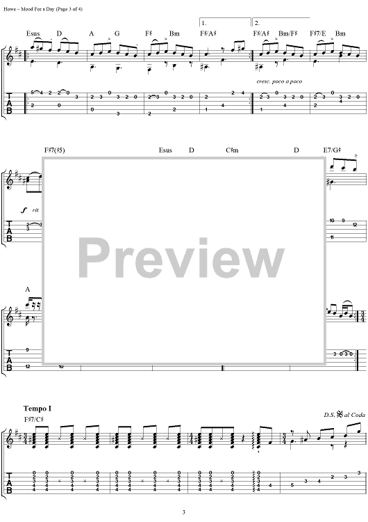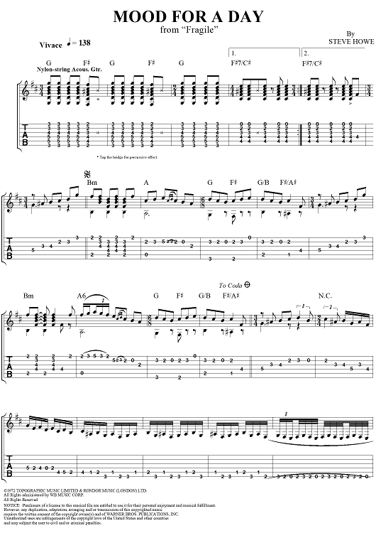 Digital Sheet Music for Mood for a Day by Steve Howe scored for Guitar Tab; id:111507
