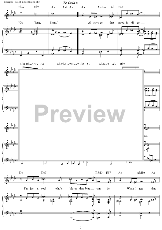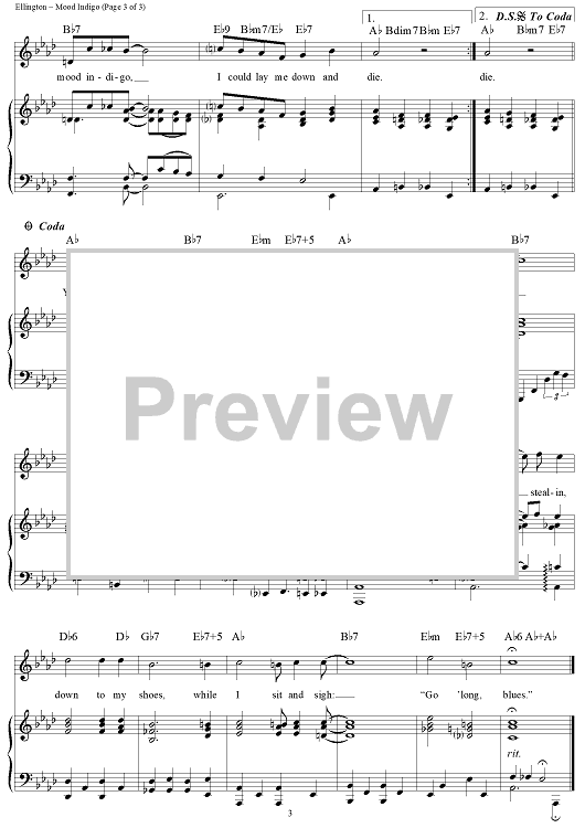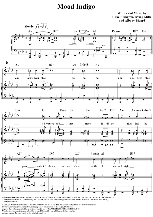 Digital Sheet Music for Mood Indigo by Duke Ellington, Irving Mills, Barney Bigard scored for Piano/Vocal/Chords; id:111945