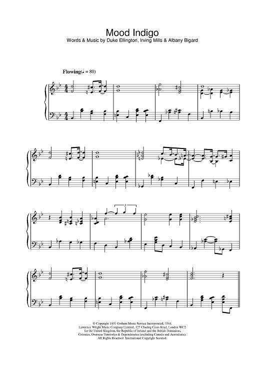 Digital Sheet Music for Mood Indigo by Duke Ellington scored for Piano; id:376096