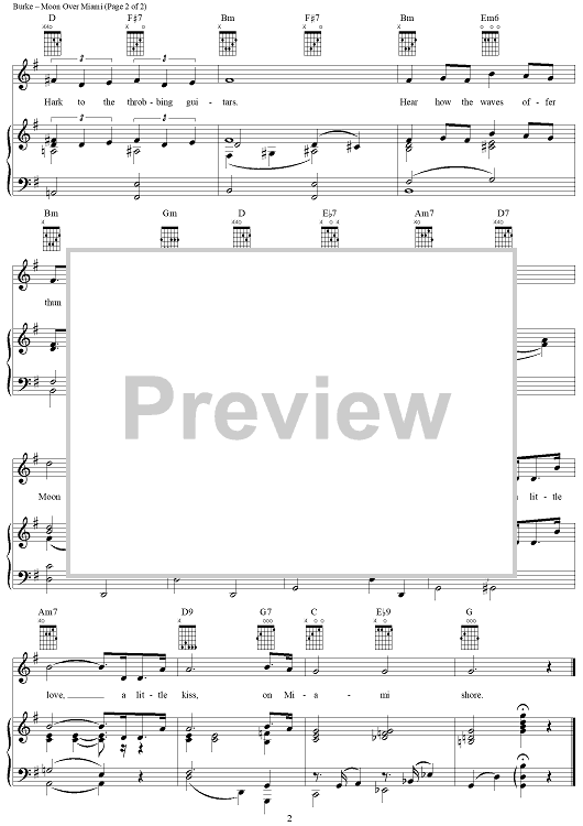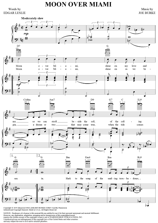 Digital Sheet Music for Moon Over Miami by Edgar Leslie, Joe Burke scored for Piano/Vocal/Chords; id:236943