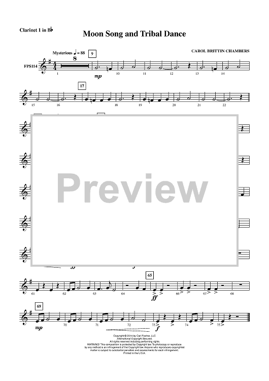 Digital Sheet Music for Moon Song and Tribal Dance - Clarinet 1 in Bb by Carol Brittin Chambers scored for Concert Band; id:451281