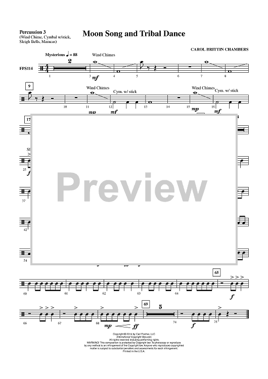 "Moon Song and Tribal Dance - Percussion 3" Sheet Music by Carol Brittin Chambers