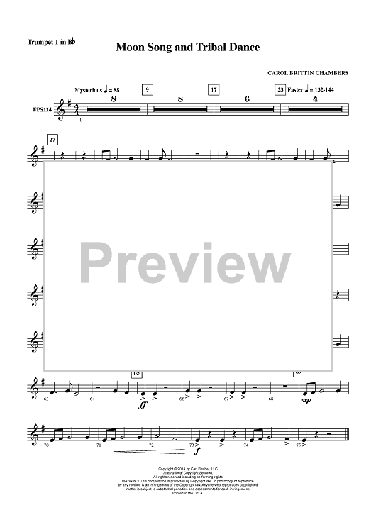 "Moon Song and Tribal Dance - Trumpet 1 in Bb" Sheet Music by Carol Brittin Chambers