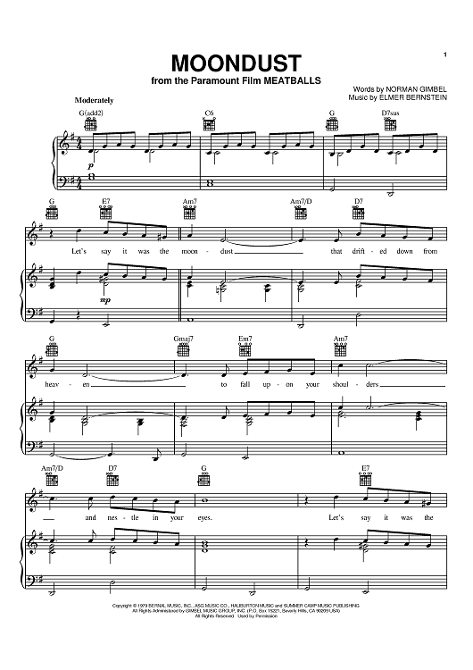 Digital Sheet Music for Moondust by Norman Gimbel, Elmer Bernstein, Terry Black scored for Piano/Vocal/Chords; id:373611