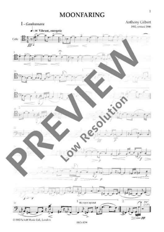 Digital Sheet Music for Moonfaring - Score and Parts by Anthony Gilbert scored for Cello And Percussion; id:477368