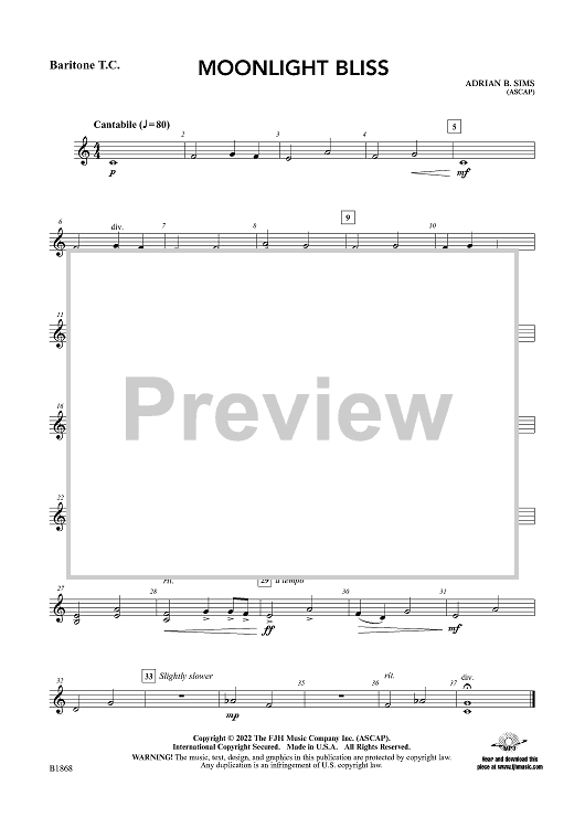 Digital Sheet Music for Moonlight Bliss - Baritone TC by Adrian B. Sims scored for Concert Band; id:498393