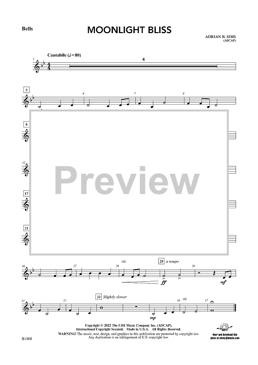 "Moonlight Bliss - Bells" Sheet Music by Adrian B. Sims