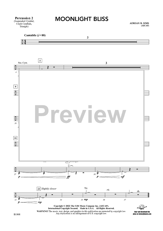 Digital Sheet Music for Moonlight Bliss - Percussion 2 by Adrian B. Sims scored for Concert Band; id:498398