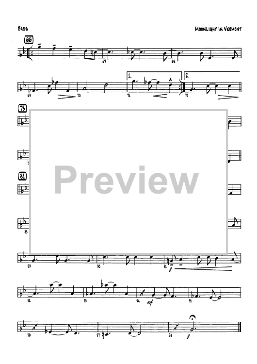 Digital Sheet Music for Moonlight In Vermont - Bass by Karl Suessdorf, John Blackburn, Dave Wolpe scored for Jazz Ensemble; id:437595