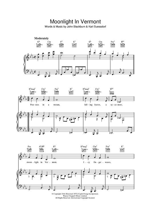 Digital Sheet Music for Moonlight In Vermont by Frank Sinatra, Karl Suessdorf, John Blackburn scored for Piano/Vocal/Chords; id:401971