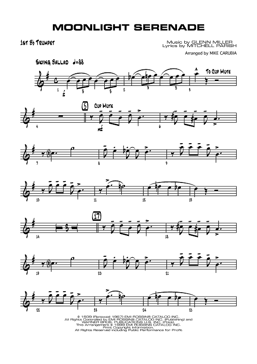 Digital Sheet Music for Moonlight Serenade - B-flat Trumpet 1 by Mitchell Parish, Glenn Miller, Mike Carubia scored for Jazz Ensemble; id:358471