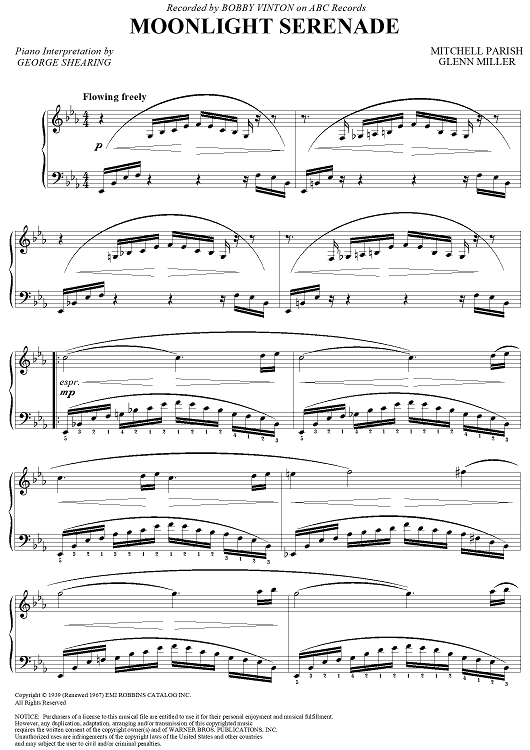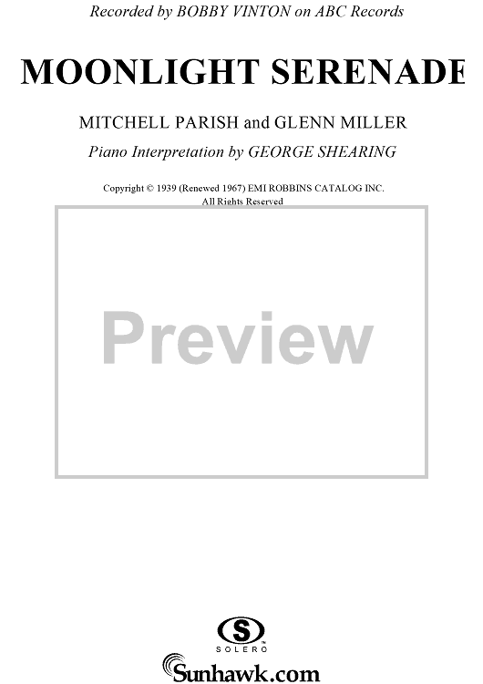 Digital Sheet Music for Moonlight Serenade by Mitchell Parish, George Shearing, Glenn Miller scored for Piano Solo; id:116406