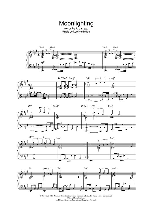 Digital Sheet Music for Moonlighting by Lee Holdridge, Al Jarreau scored for Piano; id:384481