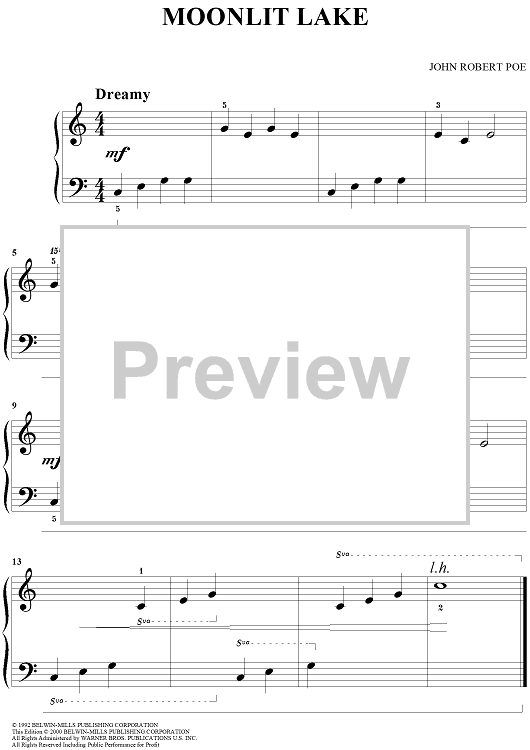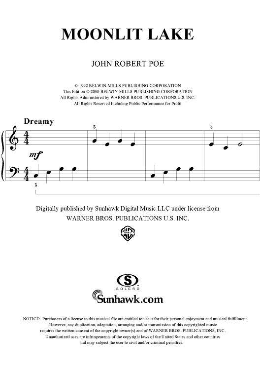 Digital Sheet Music for Moonlit Lake by John Robert Poe scored for Piano Solo; id:285981