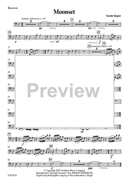 "Moonset - Bassoon" Sheet Music by Sarah Siegler