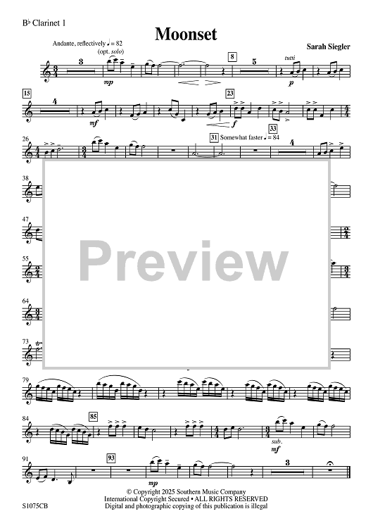 Digital Sheet Music for Moonset - Bb Clarinet 1 by Sarah Siegler scored for Concert Band; id:507542