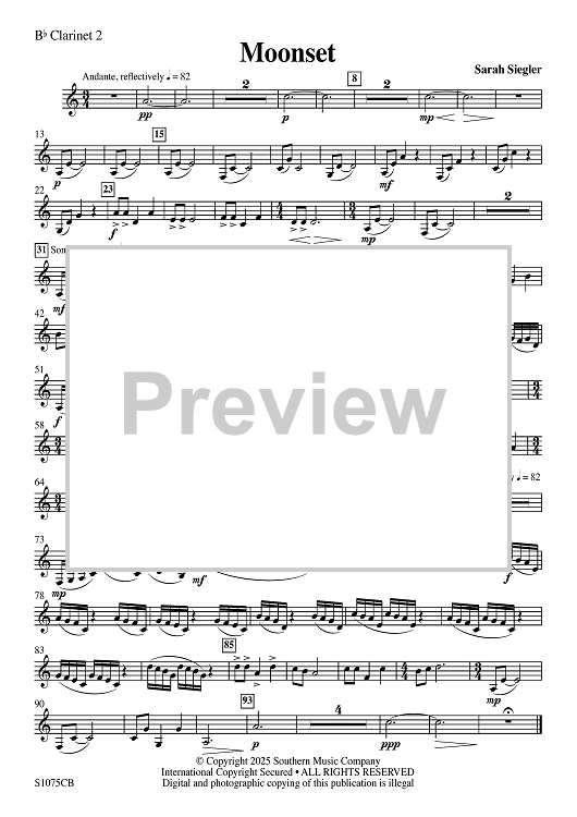 Digital Sheet Music for Moonset - Bb Clarinet 2 by Sarah Siegler scored for Concert Band; id:507543