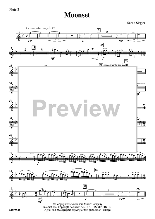 "Moonset - Flute 2" Sheet Music by Sarah Siegler