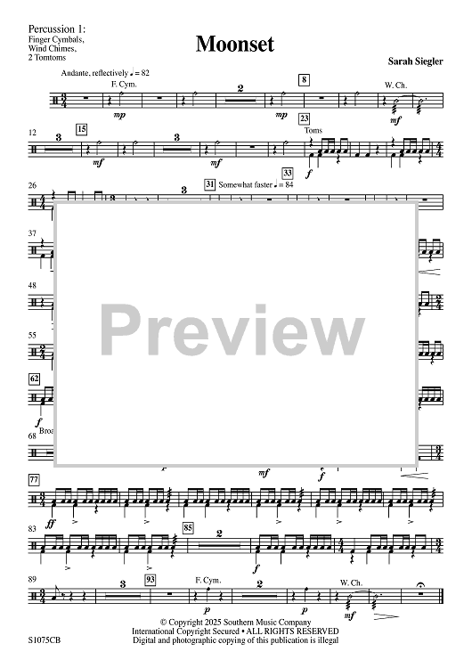 Digital Sheet Music for Moonset - Percussion 1 by Sarah Siegler scored for Concert Band; id:507563