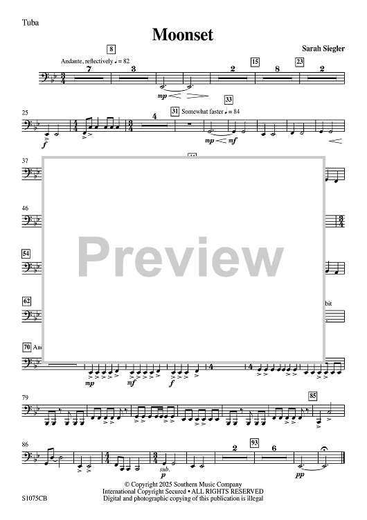 "Moonset - Tuba" Sheet Music by Sarah Siegler