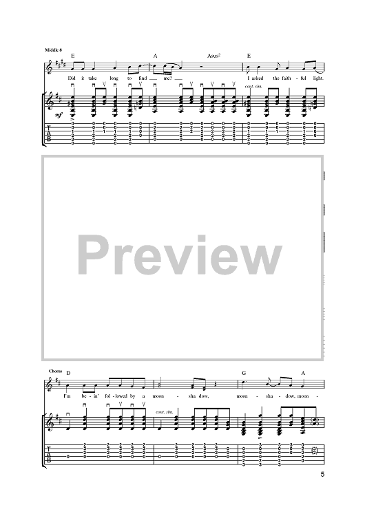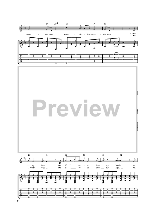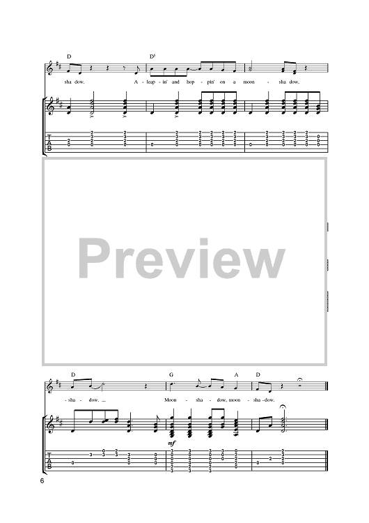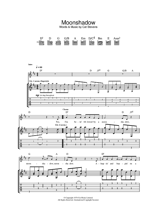 Digital Sheet Music for Moonshadow by Cat Stevens scored for Guitar Tab; id:375608