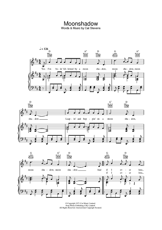 Digital Sheet Music for Moonshadow by Cat Stevens scored for Piano/Vocal/Chords; id:386572