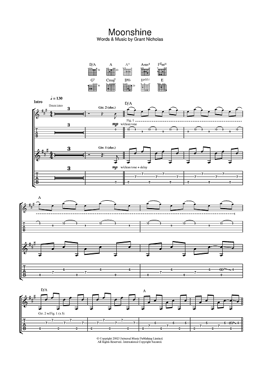 Digital Sheet Music for Moonshine by Feeder scored for Guitar Tab; id:377936