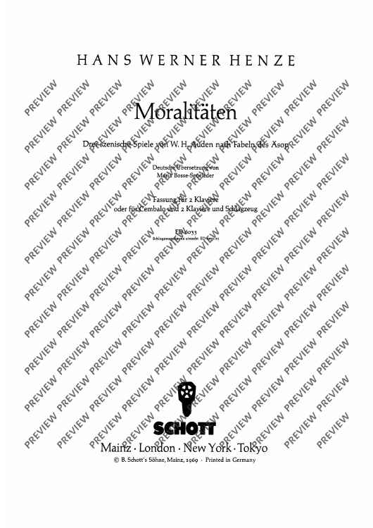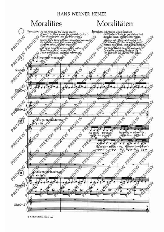"Moralities - Piano Reduction" Sheet Music by Hans Werner Henze