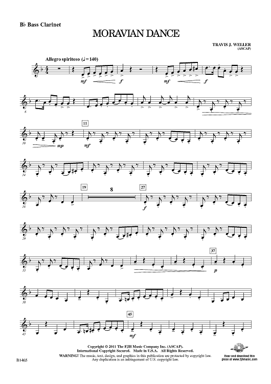 Digital Sheet Music for Moravian Dance - Bb Bass Clarinet by Travis J. Weller scored for Concert Band; id:425502