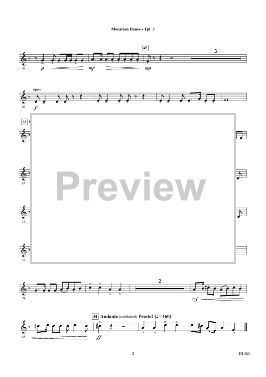 "Moravian Dance - Bb Trumpet 3" Sheet Music by Travis J. Weller