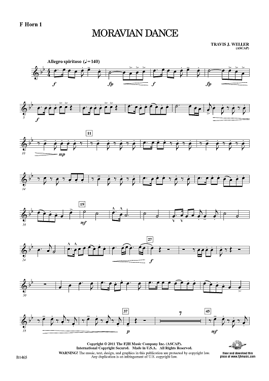 "Moravian Dance - F Horn 1" Sheet Music by Travis J. Weller