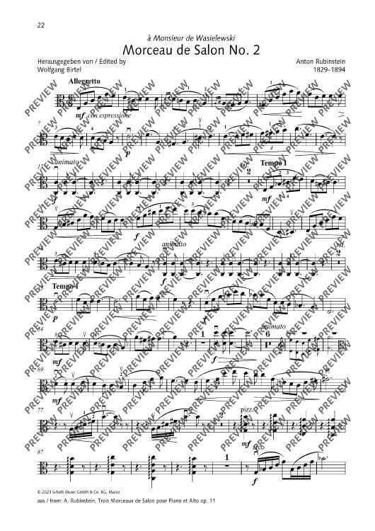 Digital Sheet Music for Morceau de Salon No. 2 by Grigorjewitsch Rubinstejn scored for Viola And Piano; id:499983